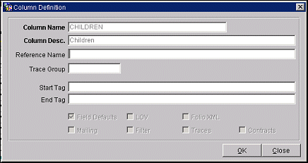 Highlight a description and select the Edit button, or double-click on an entry,  to display the Column Definition screen.