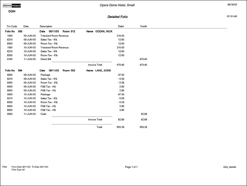 This report shows all amounts posted to a guest folio for the specified date as well as a summary of all folios generated.