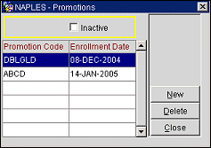 Activate. When the Inactive check box is selected, the Delete button changes to the Activate button. You can highlight an inactive promotion code and select the Activate button to display/activate promotion codes.