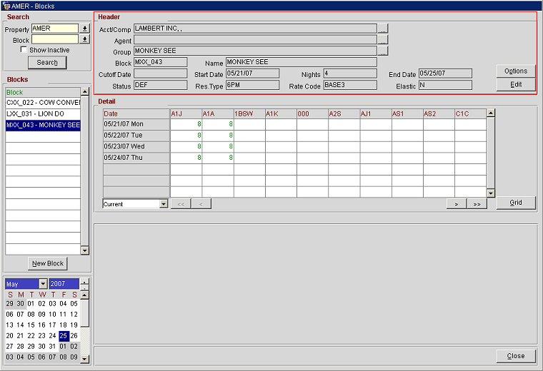 Understanding the Header Area of the Blocks Screen