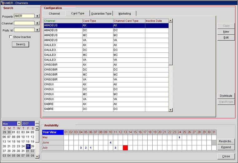 New. Select this button to access the Credit Card Type - New screen and configure new card types associated with the properties and channels.