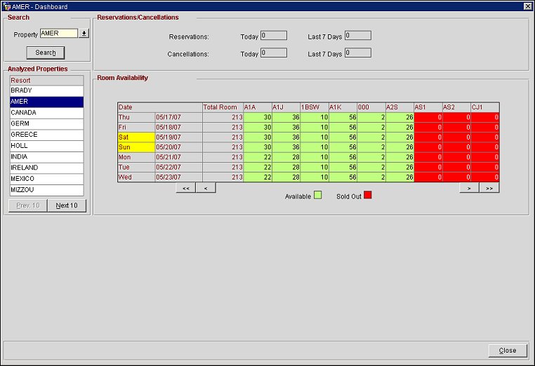 Displays the reservations and cancellations for a specific property.