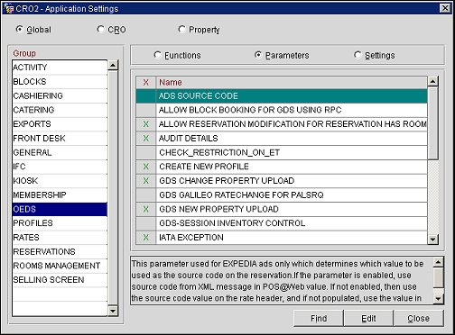 ADS SOURCE CODE - This parameter is used for Expedia ADS only and determines which value is to be used as the source code on the reservation. The available values are Y and N (enable and disable). If the parameter is enabled, the source code is used from the XML message in the POS@Web value. If not enabled, then the source code value on the rate header is used. If not populated, use the value found in the Name field of Channel Setup.