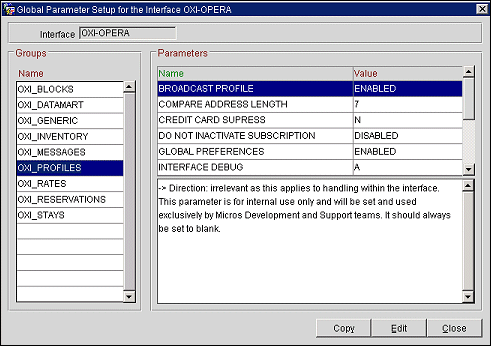 Broadcast Profile. Values are Enabled or Disabled. When Enabled, a profile sent from a property is broadcasted to all subscribed properties including the property that has originally sent the profile to ORS. Depending on the interface rules, the information incoming from the property might not be the same as the information that is sent back to this property when the profile is broadcasted. If e.g., the interface rule for Addresses is set to N and the incoming address is different from the address in ORS, the broadcasted profile will have the ORS address, thus overwriting the address that was sent by the property. When set to Disabled, the profile will not be broadcasted to any property.