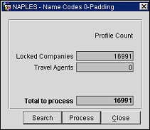 Process. Select this button to pad the Corporate IDs and IATA numbers of the company and travel agent profiles.