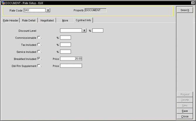 Breakfast Included. Select the check box to include the price of breakfast in with the rate code. Type the actual dollar amount in the Price field to include with the rate code.