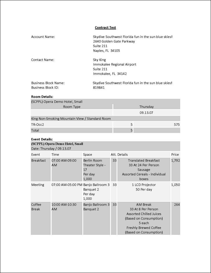 Note: When Events belonging to a Sub-Block are printed, all Events will print on one contract - as if they were one booking - not separate contracts.