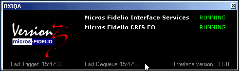 Example:  Micros Fidelio Interface Services and CRIS FO in Running mode.