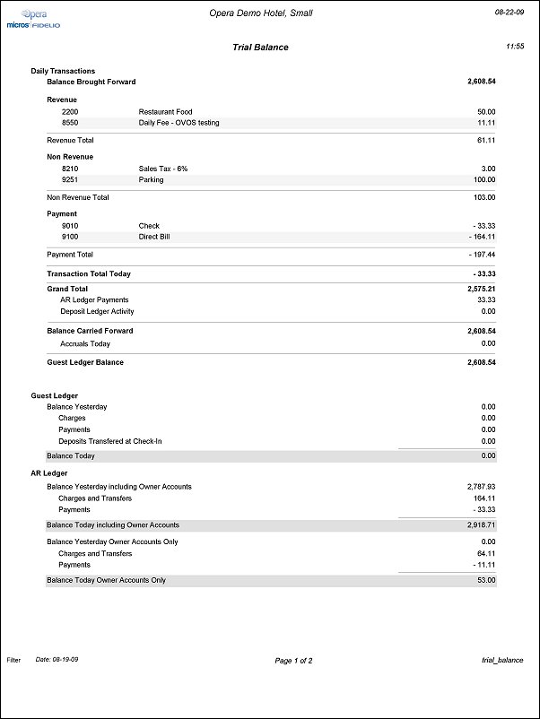Trial Balance Report with Inter Hotel Revenues (available when the OPP_MHT3 Multi-Property Cross Revenues add-on license is active).